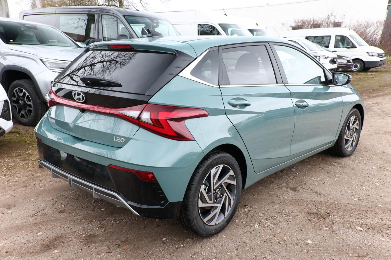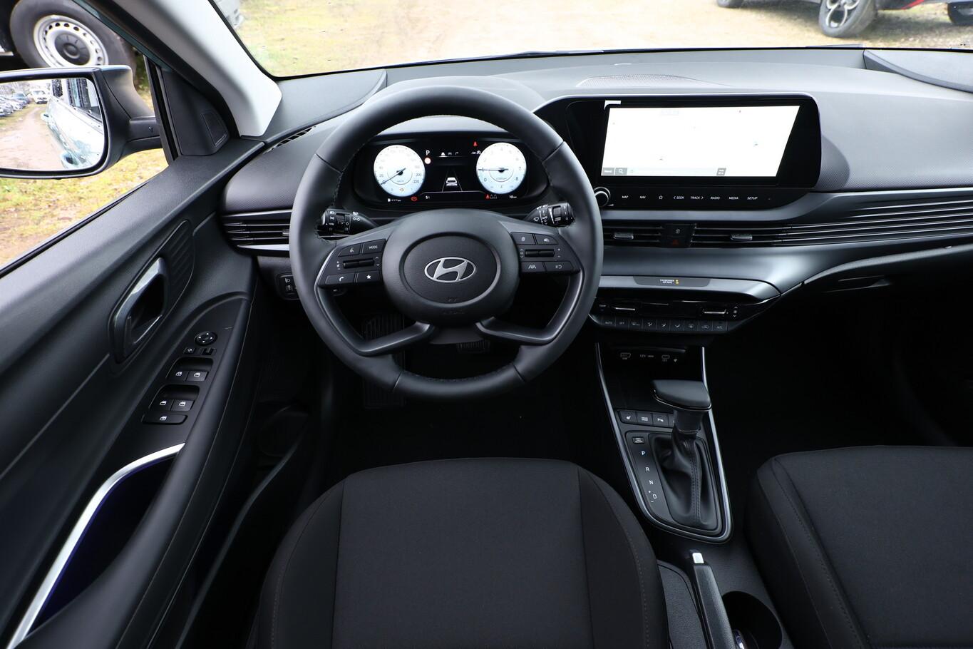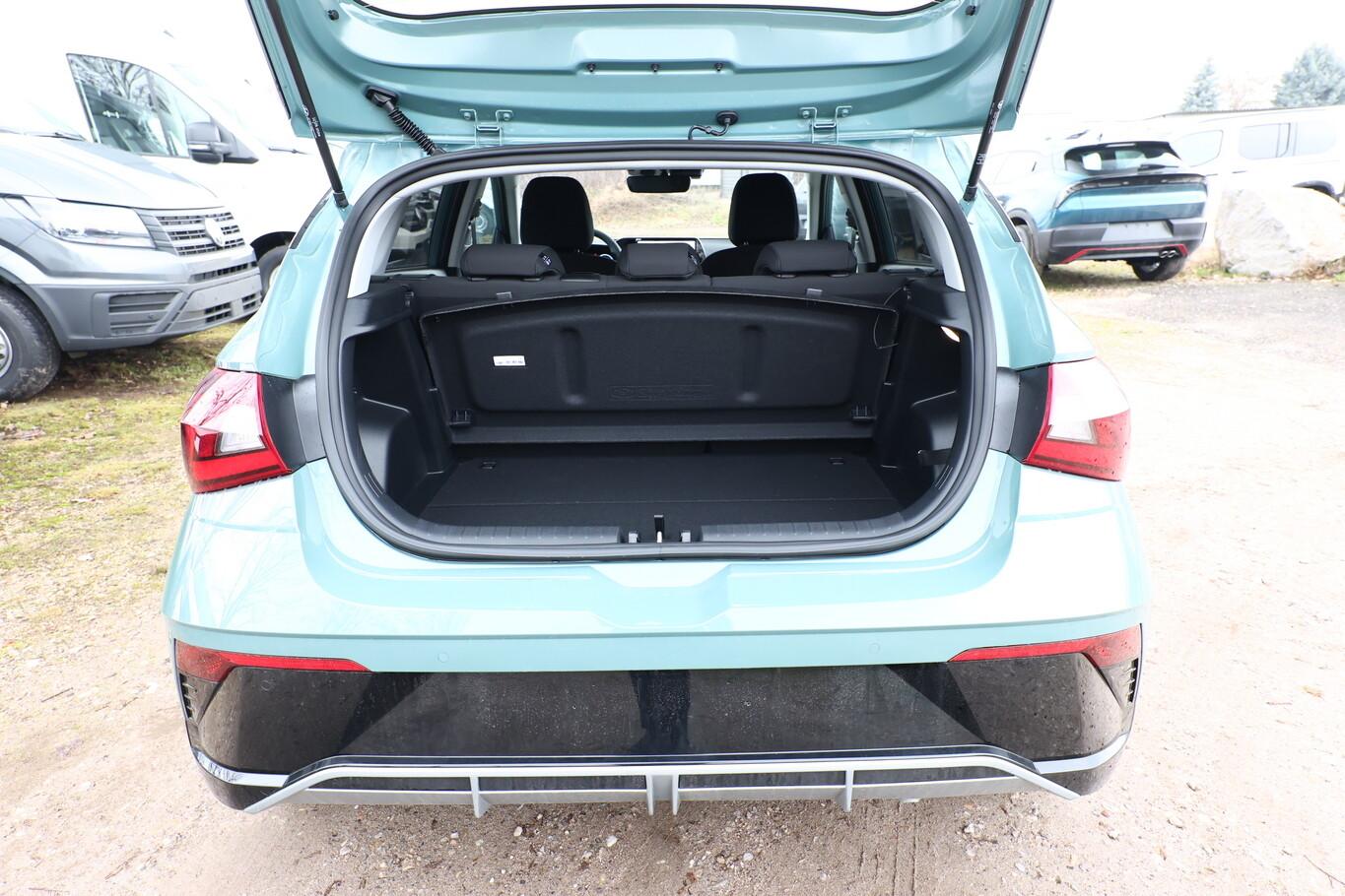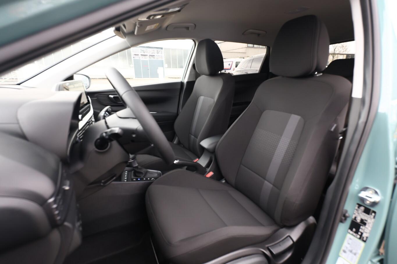 Ambiente-Beleuchtung LED, Beifahrersitz mit Tasche an Rückseite, Doppelter Kofferraumboden, Einparkhilfe vorn, Fahrassistenz-System: Autonome Notbremsfunktion inkl. Frontkollisionswarnung, Fußgänger- und Fahrradfahrererkennung, Fensterzierleiste in Chrom, Innentürgriffe in Chrom, Isofix-Aufnahmen für Kindersitz, Kopfstützen vorn verstellbar, LED-Leseleuchten vorn und hinten, Lenkrad (Leder, 4-Speichen) mit Multifunktion, LM-Felgen 16 Zoll, Nebelschlussleuchte, Reifen 195/55 R16, Schadstoffarm nach Abgasnorm Euro 6e (EU6 EA), Smart-Key, SmartLink (Apple CarPlay und Android Auto), Sonnenblenden mit Spiegel (beleuchtet LED), Sportsitze vorn, Licht-Paket (Abbiegelicht / Heckleuchten LED / Scheinwerfer LED), Audio-Navigationssystem (Touchscreen-Farbdisplay (10,25 Zoll)), Service-System: Remote Services (Blue Link) (Service-System: Online Update OTA (Over The Air)), Fahrassistenz-System: Insassenalarm (Rear Occopant Alert, ROA), Fahrassistenz-System: Multikollisionsbremse (Multi Collision Brake), Gepäck-/Laderaumleuchte, Heckscheibe heizbar, Induktionsladeschale für Smartphone, Innenspiegel mit Abblendautomatik, Karosserie: 5-türig, Kopfstützen hinten verstellbar, Lenkrad heizbar, Lenksäule (Lenkrad) höhenverstellbar, Lenksäule (Lenkrad) längsverstellbar, Otto-Partikelfilter (OPF), Radioempfang digital (DAB+), Schalt-/Wählhebelgriff Leder mit Metall-Applikationen, Scheibenbeschlagerkennung / Regelung, Sitz vorn links höhenverstellbar, Sitzbezug / Polsterung: Stoff, Steckdose (12V-Anschluß) vorn, Türgriffe außen Wagenfarbe, Freisprecheinrichtung Bluetooth, USB-Anschluss (Typ C), USB-Anschluss hinten, USB-Anschluss Mittelkonsole, Anti-Blockier-System (ABS), Elektron. Stabilitätskontrolle (ESC) mit Bremsassistent, Wegfahrsperre (elektronisch), Getriebe 7-Gang - Doppelkupplungsgetriebe DCT, Klimaautomatik, Airbag Beifahrerseite, Airbag Beifahrerseite abschaltbar, Airbag Fahrerseite, Fensterheber elektr. mit Einklemmschutz, Fensterheber elektrisch hinten, Fensterheber elektrisch vorn, Kopf-Airbag-System, Mittelarmlehne vorn verschiebbar, Rücksitzlehne geteilt/klappbar, Seitenairbag vorn, Sitzheizung vorn, Verglasung hinten abgedunkelt (Privacy Glass), Zentralverriegelung mit Fernbedienung, Fahrassistenz-System: Fahrprofilauswahl (Drive Mode), Verglasung getönt, Fahrassistenz-System: Berganfahrhilfe, Fahrassistenz-System: Verkehrszeichenerkennung, erweitert (Geschwindigkeits-Regel-/Begrenzeranlage), Geschwindigkeits-Regelanlage (Tempomat), Rückfahrkamera, Fahrassistenz-System: Sicherheitssystem mit automatischem Notruf (ERA GLONASS / eCall), Servolenkung, Außenspiegel elektr. anklappbar, Außenspiegel elektr. verstell- und heizbar, beide, Blinkleuchte in Außenspiegel integriert, Einschaltautomatik für Fahrlicht / Lichtsensor, Fahrassistenz-System: Totwinkel-Assistent, Scheibenwischer mit Regensensor, Tagfahrlicht LED, Einparkhilfe hinten, Fahrassistenz-System: aktiver Spurhalteassistent (LKAS, Lane Keep Assist System), Fahrassistenz-System: Querverkehrs-Assistent Heck (Cross Traffic), Reifendruck-Kontrollsystem, Alarmanlage, Start/Stop-Anlage